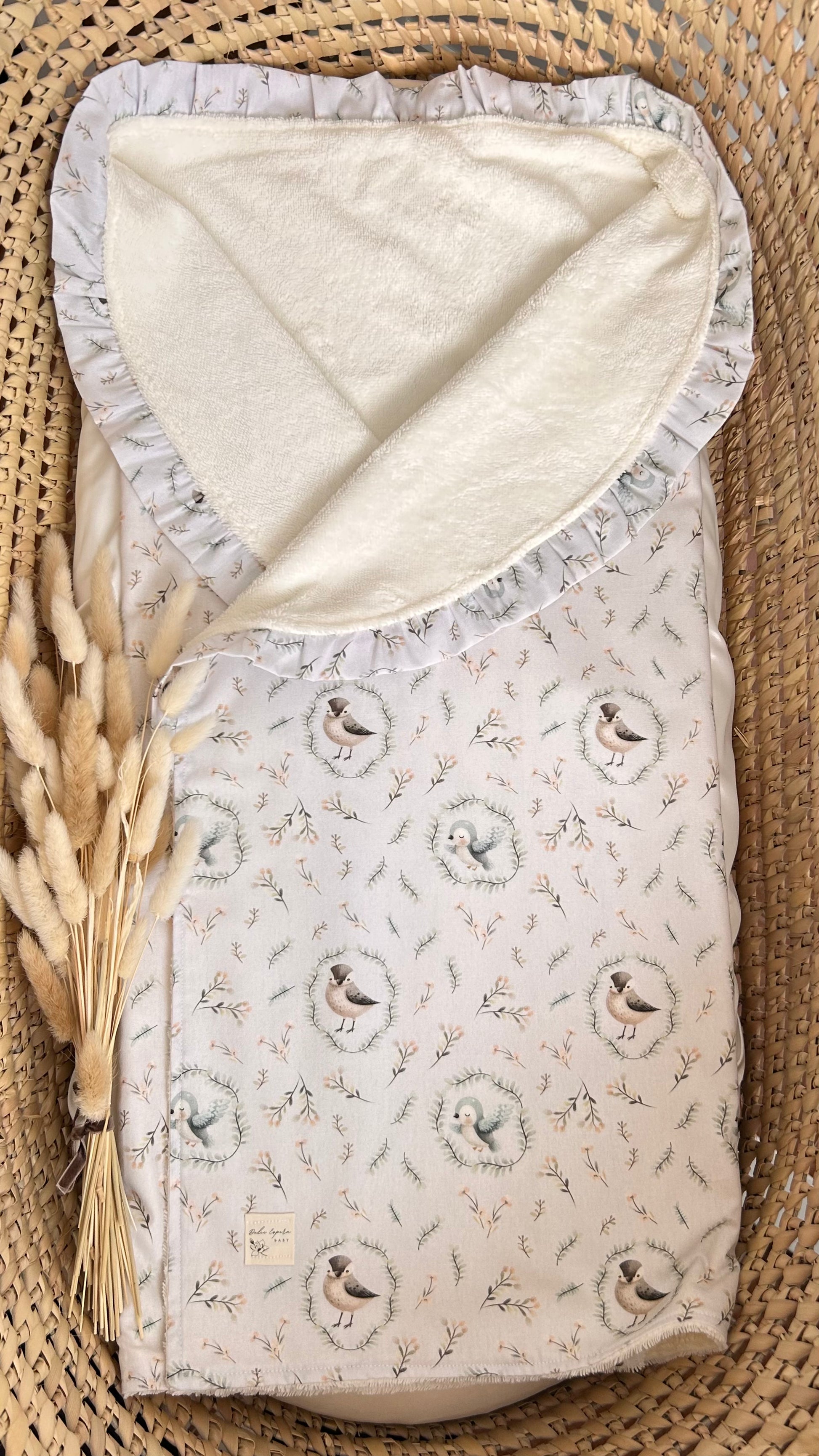 Partea interioară este dintr-un terry moale din bambus, de culoare alb crem, de calitate superioară, foarte fin și ideal pentru pielea sensibilă a bebelușului.